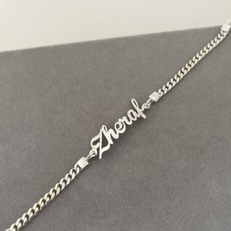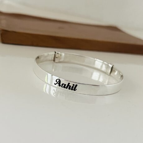 Name Engraved Silver Baby Blue Sapphire Bracelet